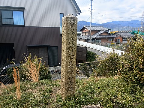 江戸時代には旅人が行き交い、茶店も繁盛していたのだろうが、今はバイパスの建設などもあって人影もなかった。木に掴まりながら一里塚へ登ると浅野幸長陣所古址の石碑が建っていたが、登ってみると案外高く感じられる。