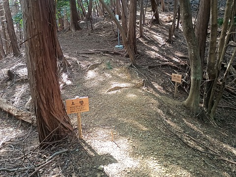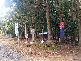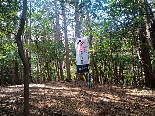 境内から外れて南宮山ハイキングコースをたどると、安国寺恵瓊陣の案内板と恵瓊の旗指物がはためいていたが、実際の陣所はハイキングコースをしばらく登り、分岐地点から東蛇溜池の東へと向かう地点にある。分岐地点からそれほど遠くなく、道は明瞭できつい登りもない。