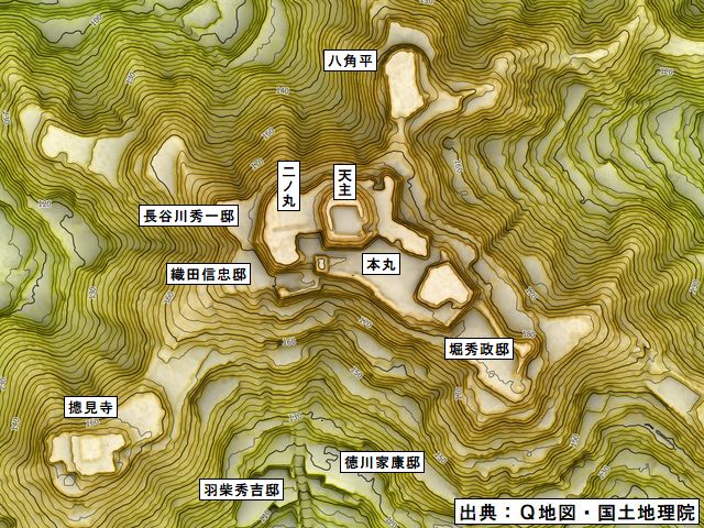 永禄11年(1568)に上洛を果たした織田信長は、岐阜城に代わる居城として京都に近く琵琶湖の水運を最大限に利用できる地として安土を選び、天正4年(1576)にそれまでの城郭の概念を一変するかのような城が築かれた。地下階を備えた6階建の天主がそびえ、曲輪は琵琶湖に石垣を浸す絢爛豪華な城であったと当時の人々は描写している。