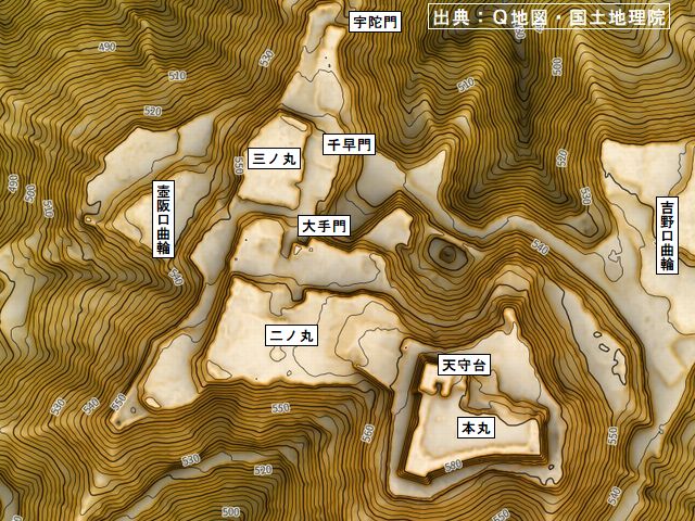 高取城は鎌倉幕府が瓦解する寸前の元弘2年(1332)に越智邦澄が築いたという。当初は貝吹山城の詰め城だった高取城だが、天文元年(1532)の一向一揆との戦いで勝利を収めた越智氏は高取城を居城とした。戦国時代は筒井順昭や松永久秀が高取城を攻めているが落城には至らなかった。越智氏は筒井順慶の配下となっていたが、当主が家臣により殺害されるという出来事が続き滅亡し、一度は廃城となった高取城は筒井順慶が郡山城の支城として取り立てた。
