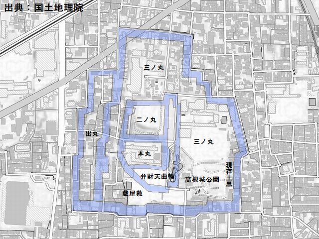 文禄4年(1595)に新庄直頼が3万石で高槻城主となるが、関ヶ原の戦いで西軍に属した直頼は改易され高槻城は徳川氏直轄の城となり大坂の陣では兵站基地として使用された。元和元年(1615)に内藤信正が4万石で高槻藩を立藩し、それ以降は江戸時代を通して譜代大名が置かれた。明治維新後に高槻城の建物は取り壊され、東海道本線の敷設により石垣も持ち去られてしまい遺構はほとんど消滅している。 |