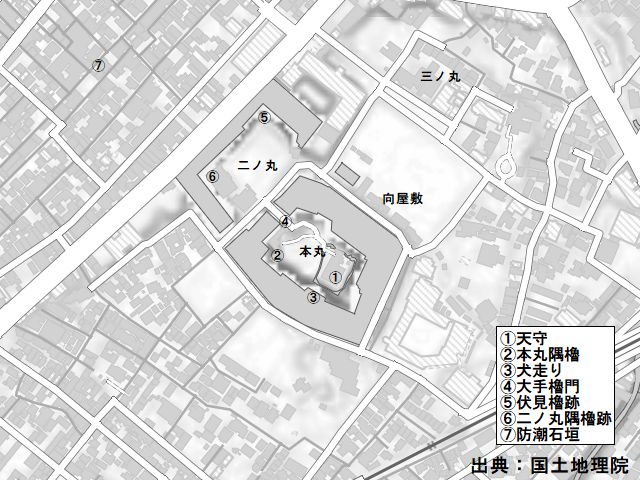 秀吉は天下統一を成し遂げると要衝の岸和田城に血縁の小出秀政を入れたが、この時代に岸和田城の天守が築かれた。慶長5年(1600)に関ヶ原の戦いで小出一族は東軍と西軍に分かれて自家の保全に成功したが、江戸時代初期には松平康重が城主となり、寛永17年(1631)に岡部宣勝が6万石の城主となると幕末まで岡部氏の居城となった。 |