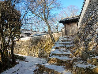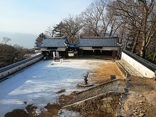 小ぶりだが立派な天守であり、現存する12天守の中でも山城は備中松山城だけである。雪はまだ降り続いていたが、そんなことはどうでもよくなり本丸から奥へと歩くと二重櫓と後曲輪といった遺構が次々と顔を見せてくれる。中心部から下ると堀切があり、ここまでが近世的なイメージを残す備中松山城の城域ということになる。そこから先は中世の大松山城へと至る道のりになるので、改めて大松山城の項で紹介しておきたい。