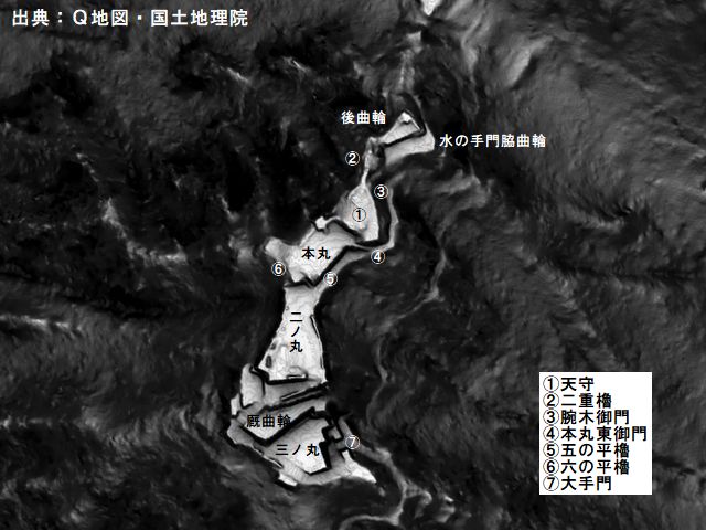 郭・天守・櫓・土塀・石垣・堀切 |