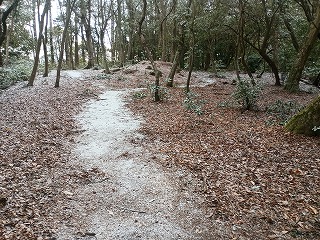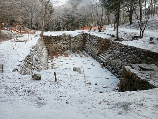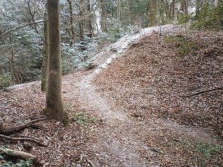 粉砂糖のような雪化粧をした山道と太陽の光に照らされてきらきらと光る雪の粒がとても美しい。そんな幻想的な世界の中を歩いたのだが、アップダウンはきつく息も絶え絶えといった塩梅だった。広々とした曲輪は三村氏の威勢を物語るようであり、これだけ峻険な山の尾根だと大規模な堀切はなく、土塁も必要としなかったようであり、あくまでも中世の山城という印象を受けた。