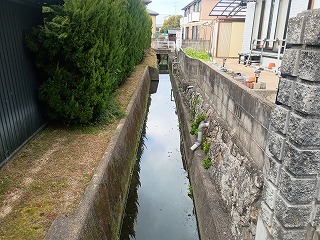 懐かしいオレンジ色の気動車に揺られながら備中高松駅へと着いた。いきなり高松城へは向かわずに花房氏の陣屋跡を目指したが、入り組んだ路地は何となく陣屋らしい雰囲気を感じさせた。少し迷ったが、何とか案内板が設置されている場所へと着いた。簡単な見取り図があるが、それによると南北に水堀が描かれている。確かに自分の足元には石垣と水路が残っているが、おそらくこれが陣屋跡の遺構なのだろう。いちばん上に積まれた石は新しそうだが、下に積まれている石は色合いも古そうに見えた。 |