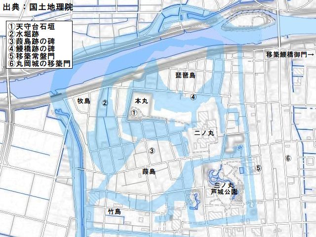 湖に浮かぶような浮き城の面影はもう見ることはできないが、本丸西側の水堀跡や三ノ丸跡の芦城公園の庭園などを見ていると、ほんの少しではあるが小松城の往時を思い浮かべることはできる。期待していた以上の遺構との出会いと古城らしさを感じることができた城だった。 |
