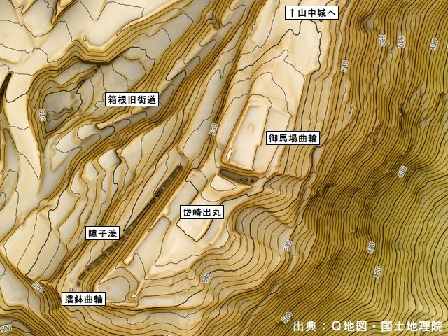 箱根を守るために北条氏が築いた城の中でも傑作と呼べるのが山中城であり、遺構の状態と規模は数ある支城の中でも群を抜いている。築城年代は諸説あるが、岱崎出丸も武田氏との緊張状態が高まった頃にその原型は築かれていたと思われる。
